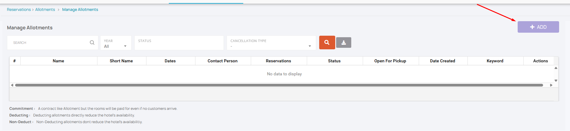 Μεταβείτε στο Front – Office & Reservations > Allotments και πατήστε Add/Προσθήκη