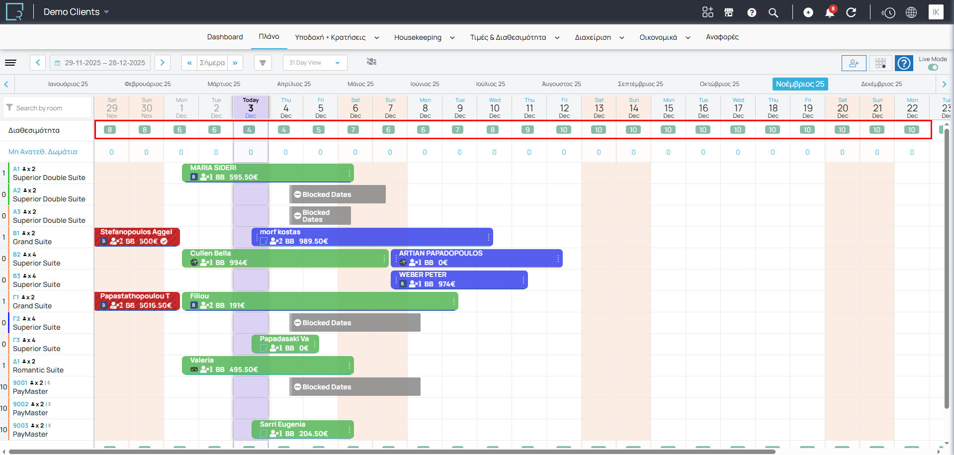 Με τη νέα αυτή βελτίωση, η απεικόνιση της πληρότητας και της διαθεσιμότητάς σας γίνεται πιο καθαρή και ευδιάκριτη, διευκολύνοντας τον γρήγορο έλεγχο της κατάστασης του ξενοδοχείου.