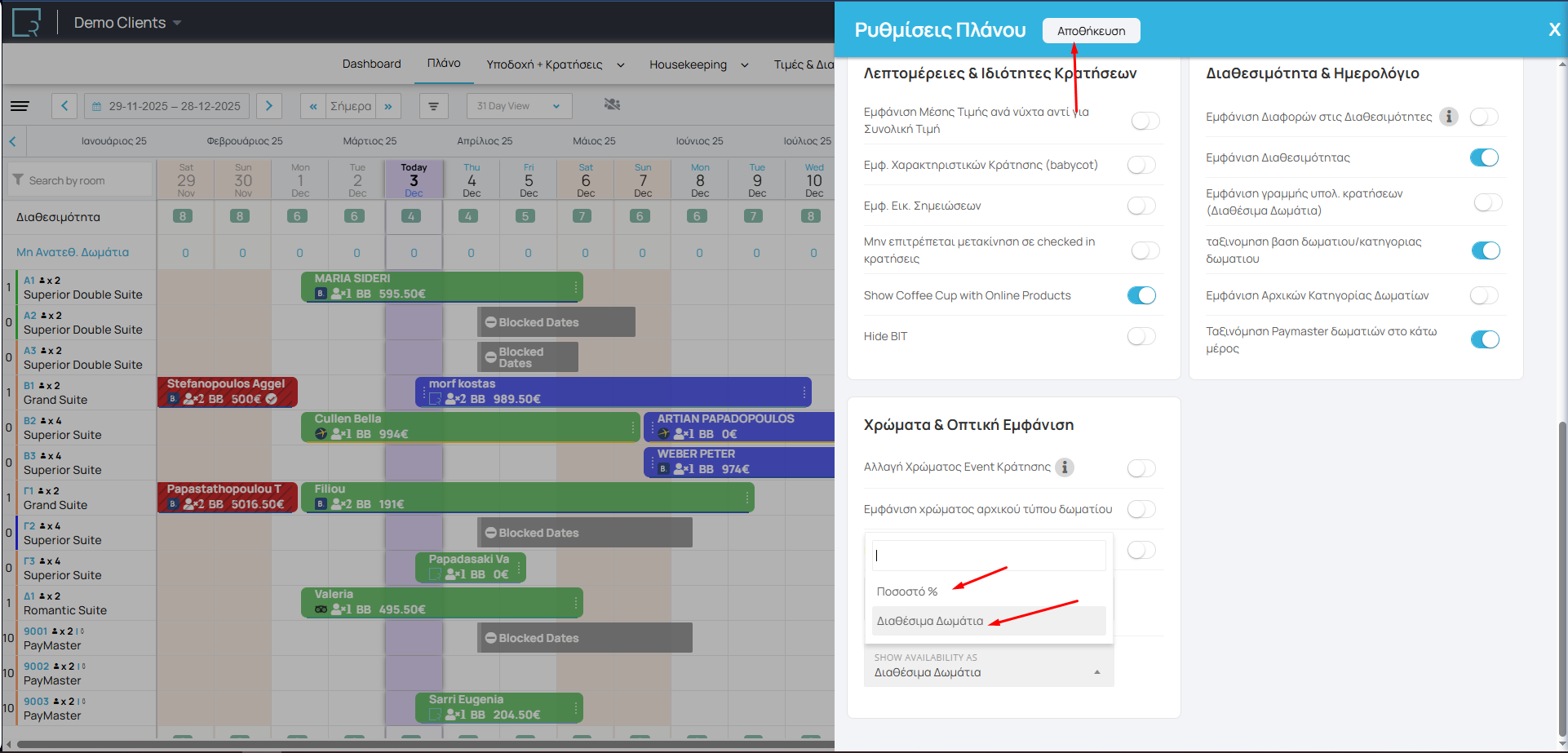 Αλλαγή Εικαστικής Εικόνας στο Occupancy & Availability στο Πλάνο του RoomRacks PMS
