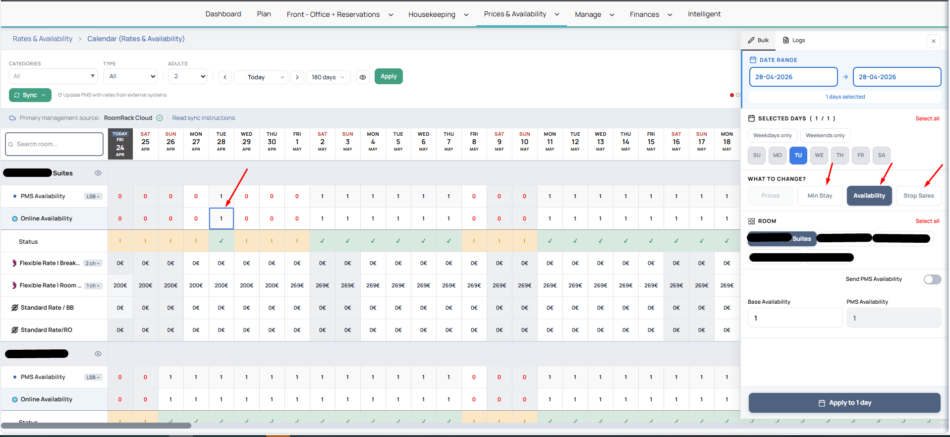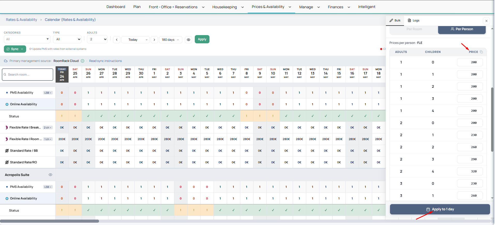 - Τα δωμάτια και τα rate plans σε κάθετη διάταξη
