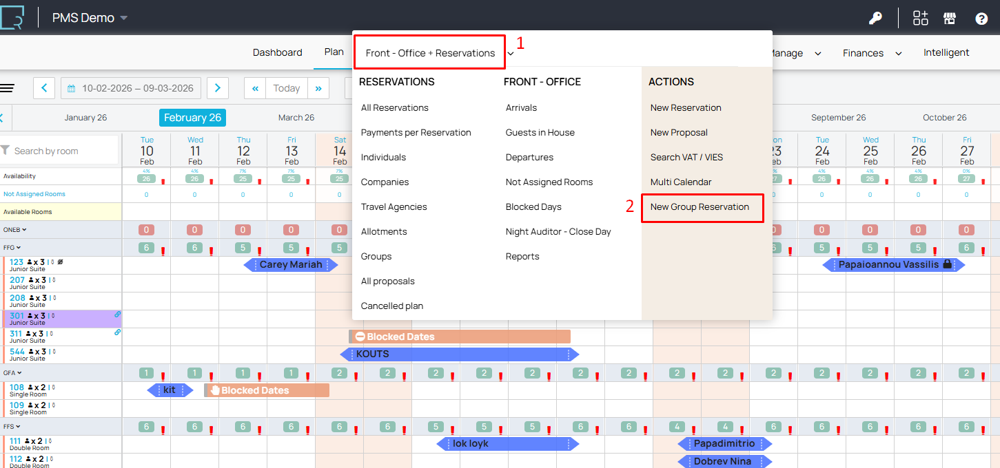 Υποδοχή + Κρατήσεις > Νέα Ομαδική Κράτηση