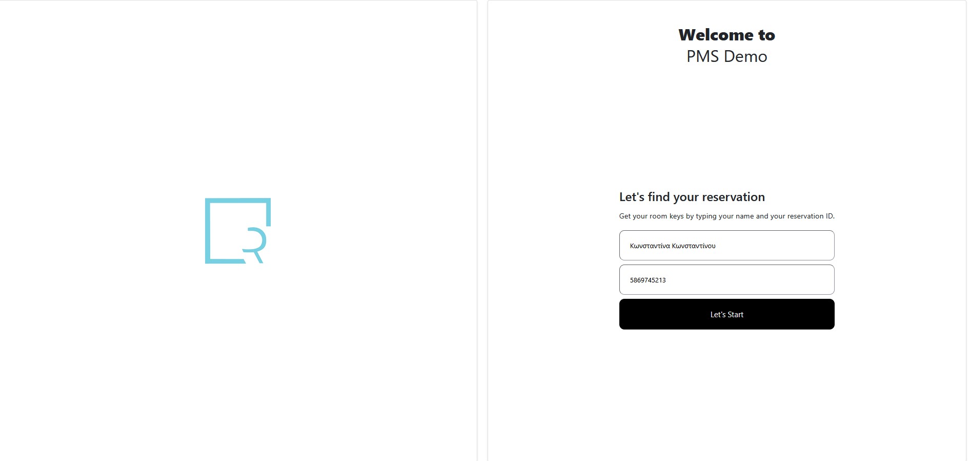 - Αφού πατήσει το link ή σκανάρει το QR, μεταφέρεται στο περιβάλλον Get Keys, όπου πρέπει να εισάγει τον αριθμό της κράτησής του και το επώνυμο που έχει δηλωθεί.